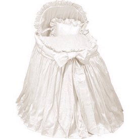 Pure SilkThis luxurious dupion silk bassinet is the ideal spot for your precious infant A full gathered skirt falls gently to the floor, creating an appearance of graceful splendor. The king sized bow and ruffled trimming add the final touch of majesty to this truly magnificent creation Your little darling will look picture perfect laying comfortably in this bassinet that is truly fit for royalty